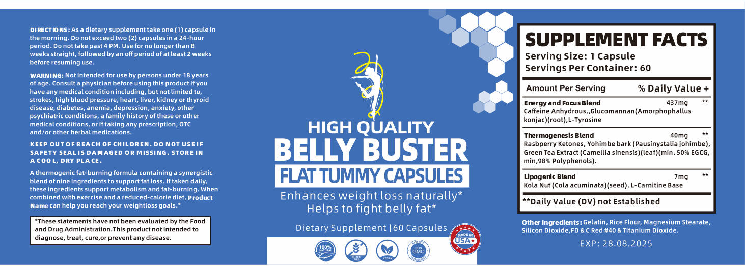 High Quality Belly Buster Flat Tummy Capsules- 60 capsules