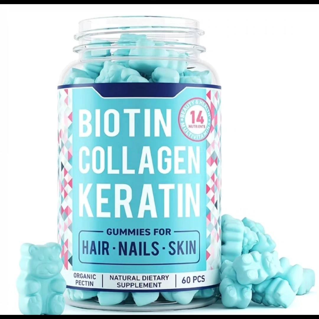 Nutritious & Delicious - Biotin, Keratin, Fish Collagen Gummies are enriched with a variety of natural vitamins that are essential for beautiful hair, skin, and nails.This berry-flavored treat is infused with Vitamin A, Vitamin B1, Vitamin B2, Vitamin B6, Vitamin B12 & Vitamin D3 to help enhance your appearance from within!.The Hair of Your Dreams - Our tasty vitamin gummies help promote and maintain shiny, thick, long, gorgeous hair by delivering vital nutrients directly to your scalp and hair follicles that stimulate healthy growth and protect hair from damage caused by different conditions and the wear and tear of daily styling..Vibrant & Glowing Skin - Radiant skin starts from within.That is why nature's cure multivitamin gummies are made using skin-perfecting ingredients like Fish Collagen & Keratin.These proteins help strengthen skin, improve moisture retention and boost elasticity while diminishing the appearance of wrinkles and fine lines..Longer, Stronger Nails - The Keratin proteins in this supplement help enhance nails by bonding to and fortifying nail plates making them more resistant to breakage for longer growth! Our gummies also improve the condition of dry, brittle nails and are especially useful if you use gel or acrylic extensions which can leave nails damaged..Your Experience Matters - we values the quality of your experience with our health and beauty products.We prioritize safety by producing our gummies using GMO-free & gluten-free ingredients.